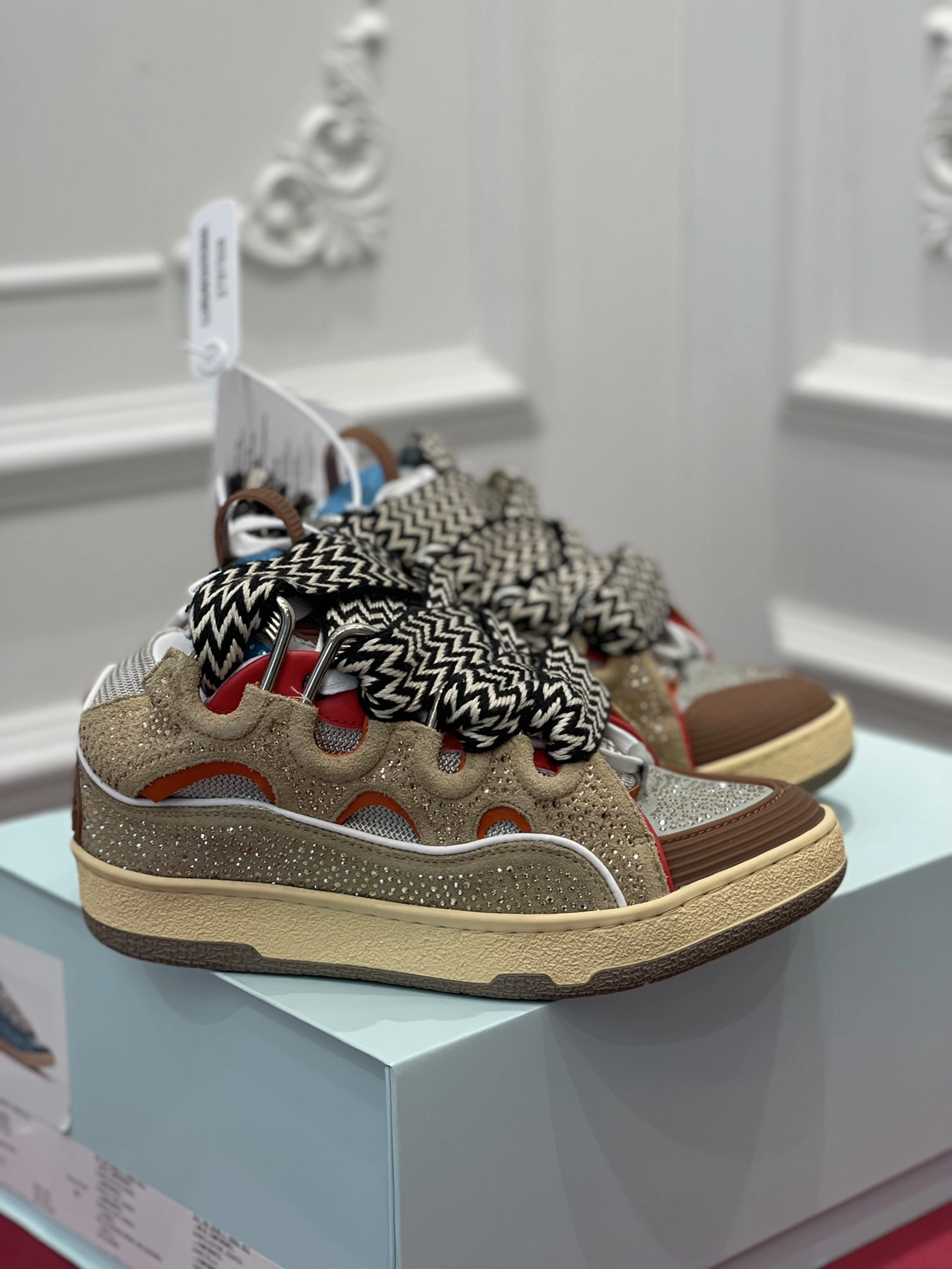 Lightweight Lanvon Curb Sneaker White Rhinestone FMSKRK11STRAP 816